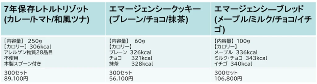 避難時に水なしでも食べることのできる食糧セット