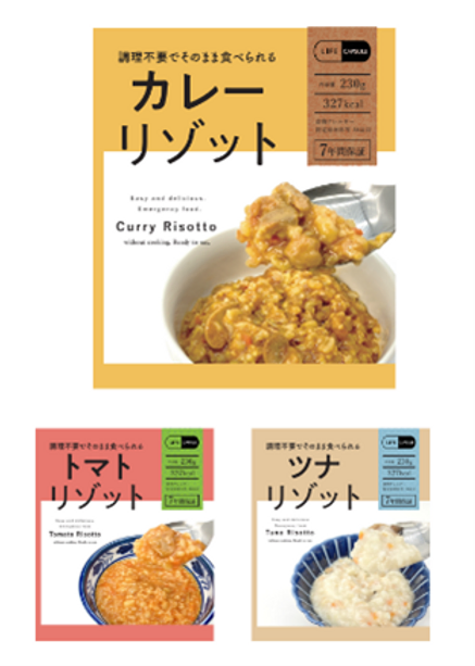 自然災害時や緊急事態に備え、即座に食事を確保できる防災食料3点セットです。
