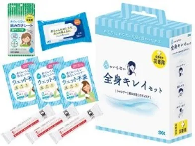 被災時、長引く避難生活時に気を付けたい二次感染対策セット。ライフラインの一つである水が確保できなくなっても「体を洗う」「排泄をする」「救急手当てをする」といった衛生面を確保し、さらには女性も安心のレディースセットも入った20人規模の防災セット3日分。