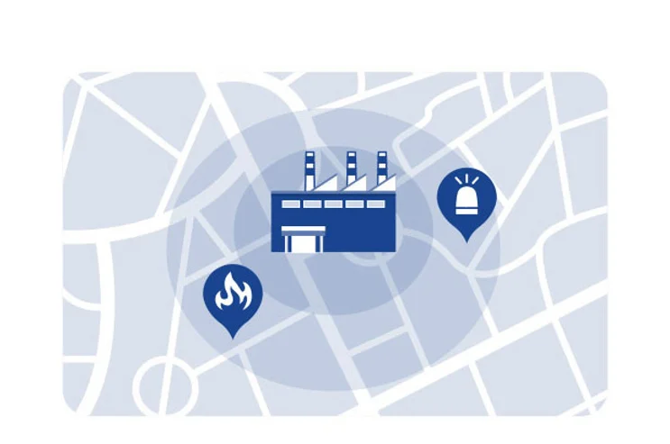 お客様の事業所や販売店などを地図上に登録し、設定した半径の中で事象が発生した場合、メールの通知機能を搭載しています。