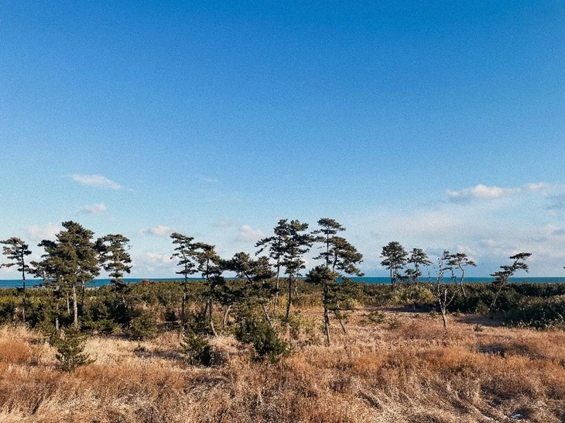 希望の丘から見た海岸の様子・植樹された樹々が一面に育っている