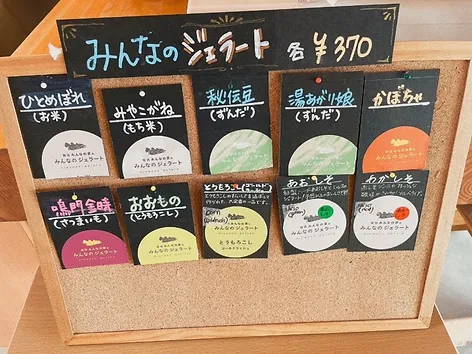 食後に岩沼産の食材を使用したジェラートもいただきました。色んな種類があり、目移りしてしまいました。