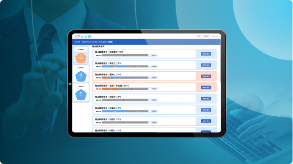 事業継続に必要な情報を収集・集計・共有する情報管理ポータルシステムです。安否情報や拠点被害、外部情報を一元管理し、時系列で可視化。拠点・部門を横断して情報を共有し、安否確認後の迅速な意思決定を支えます。